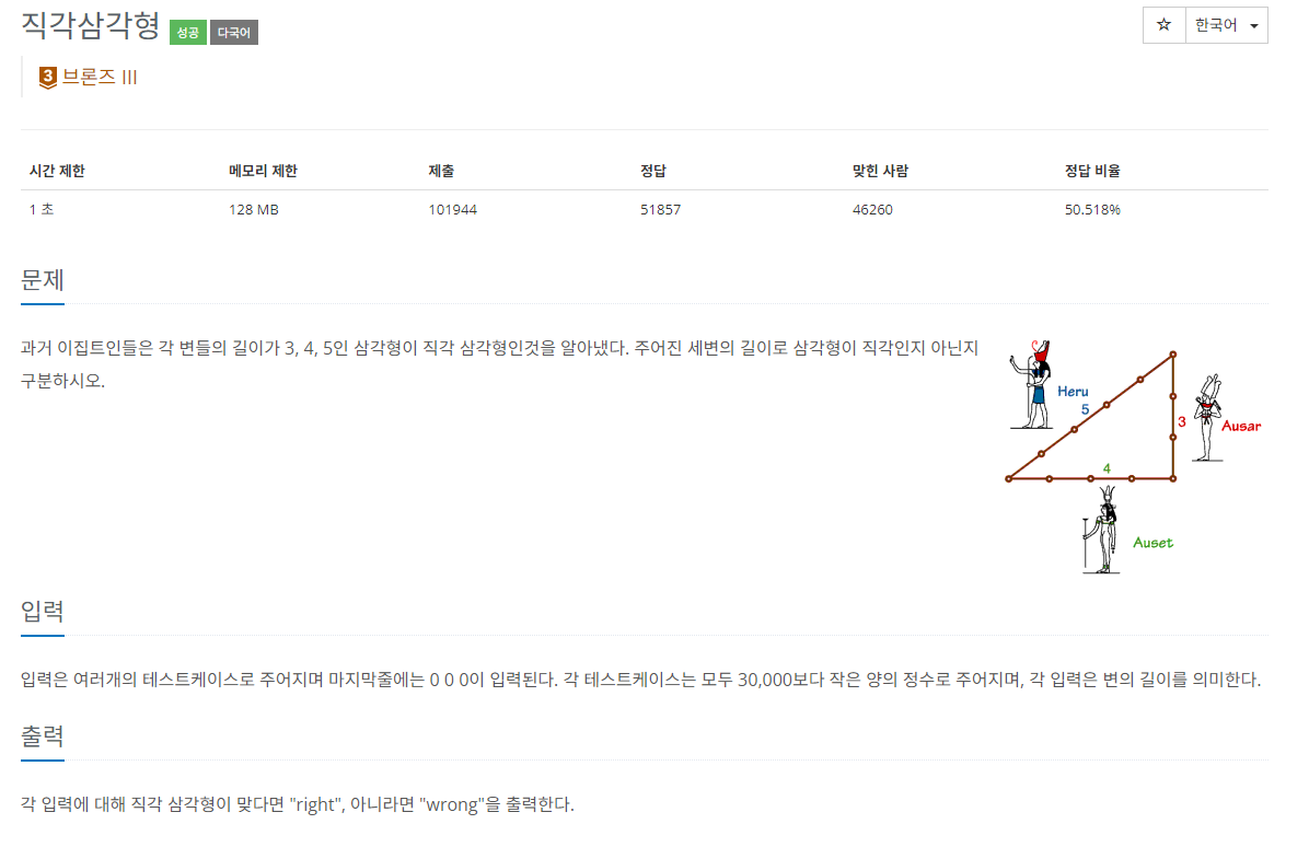 [python_파이썬_Pass]백준_4153번_직각삼각형_수학_풀이