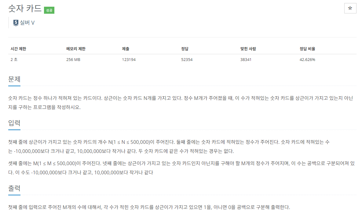 이전에 해시를 이용한 방법으로 해결했으나 이진탐색 및 해시등 여러가지를 학습한 후 다시 풀어보았다.