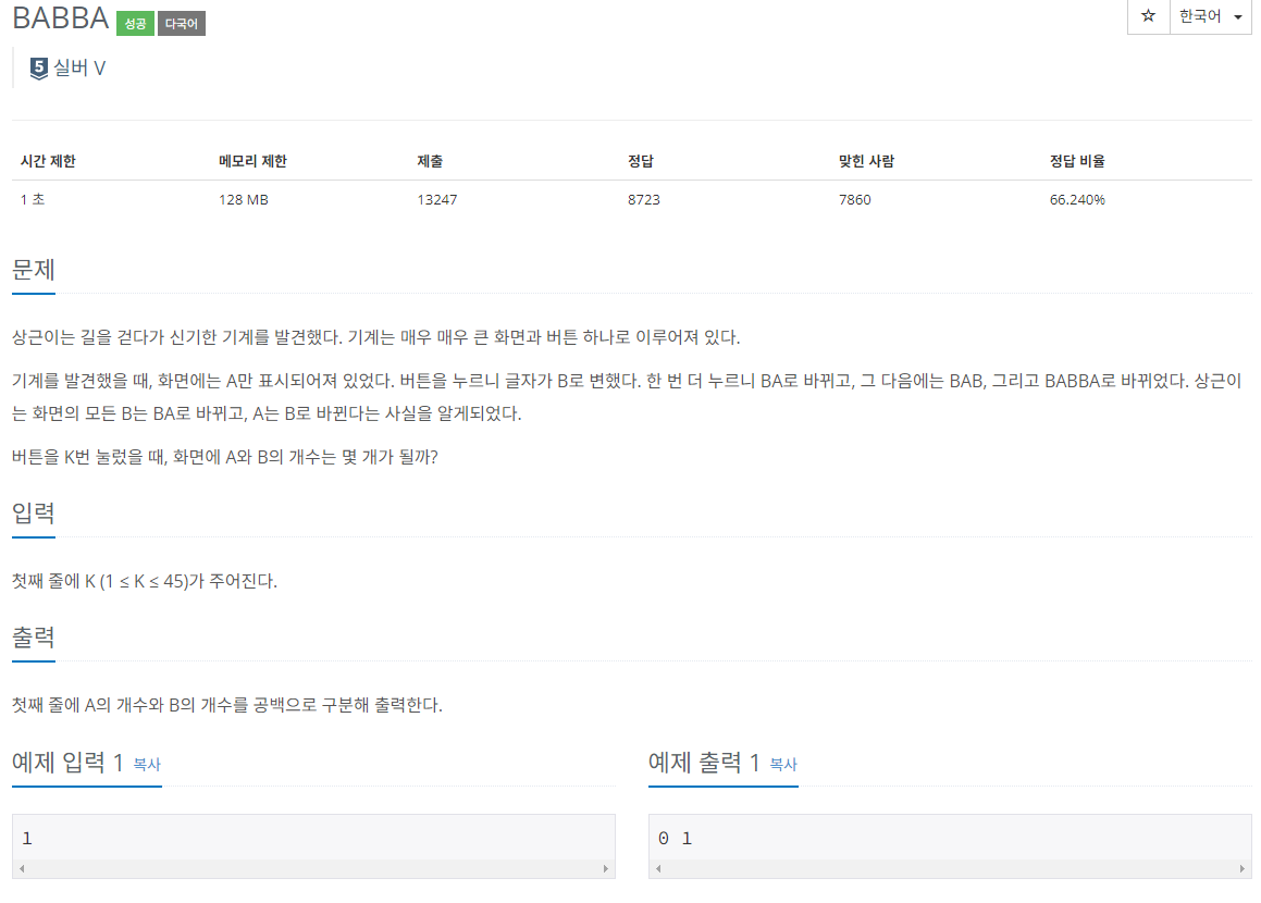 ★피보나치수열 복습 필요_[python_파이썬_Pass]백준_9625번_BABBA_다이나믹프로그래밍_풀이