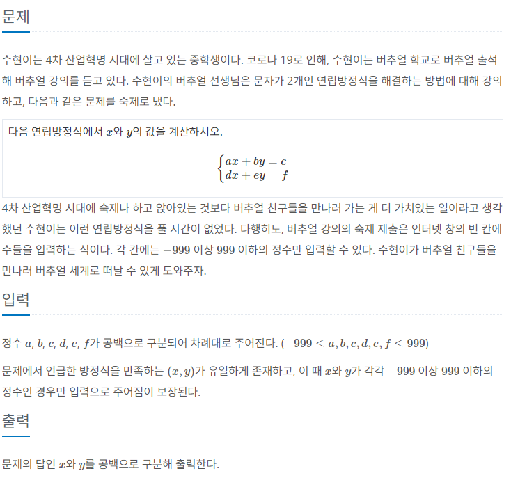 [python_파이썬]백준_19532번_수학은 비대면강의입니다_풀이