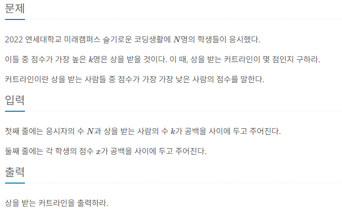 [python_파이썬_pass]백준_25305번_커트라인_풀이