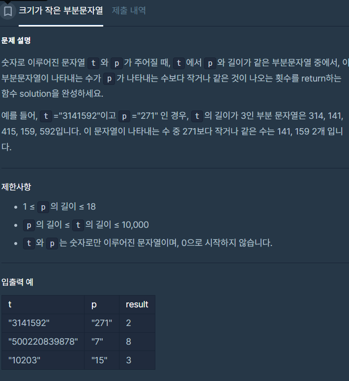 [python_파이썬_pass]프로그래머스_LV1_크기가 작은 부분문자열_풀이