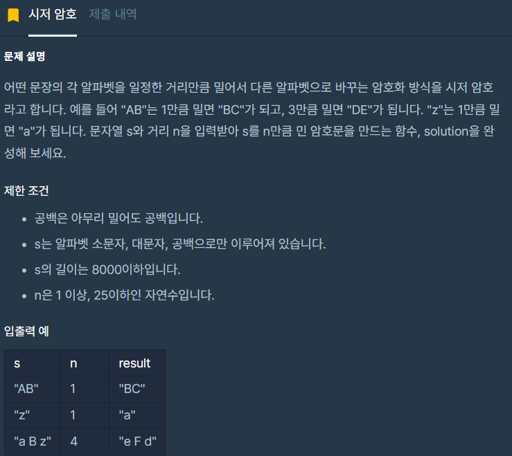 [python_파이썬_pass]프로그래머스_LV1_시저 암호_풀이