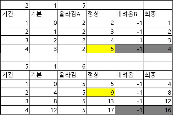 즉, 올라가는 도중에 최종 높이에 도착하는 경우밖에 없다. (회색음영은 필요없는 구간)