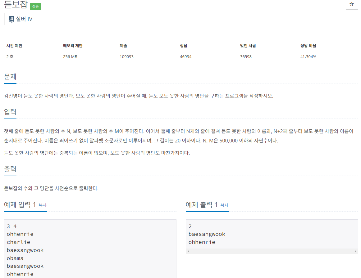[python_파이썬_pass_집합 관련 함수 설명]백준_1764번_듣보잡_풀이