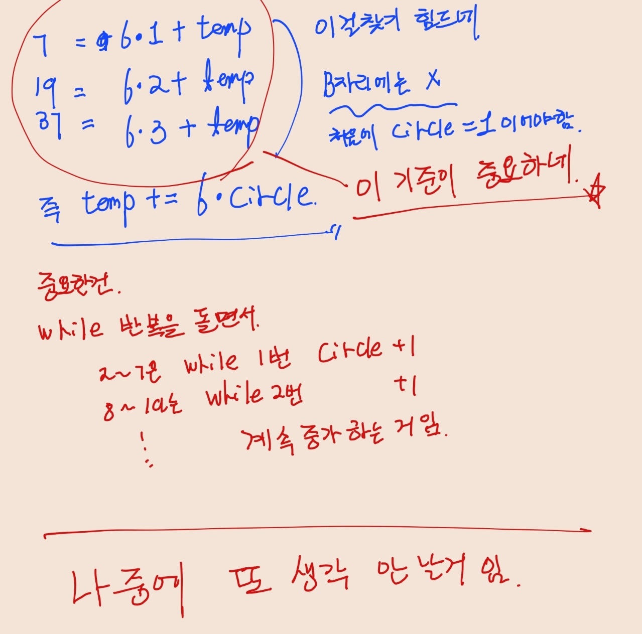 즉, temp가 아래의 조건으로 계속 나오면 됨. 아래 숫자들의 공통 요소를 찾기 힘듬. 근데 6이란 숫자를 초반에 찾을 수 있음
