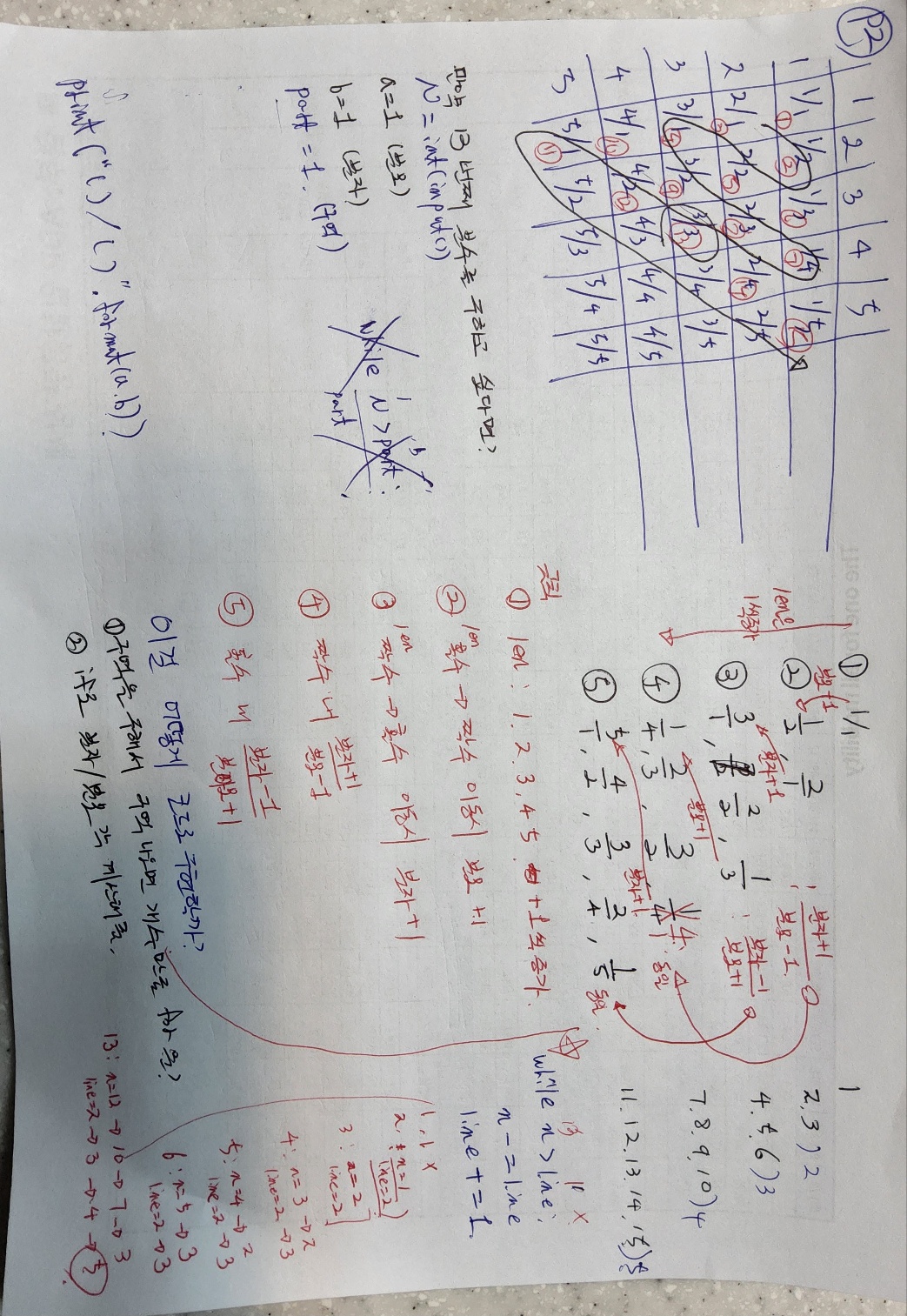 2292번 벌집 // 1193번 분수찾기 문제에서 주어진 문제에서 while문의 조건을 생각해 내는게 너무 어렵다.