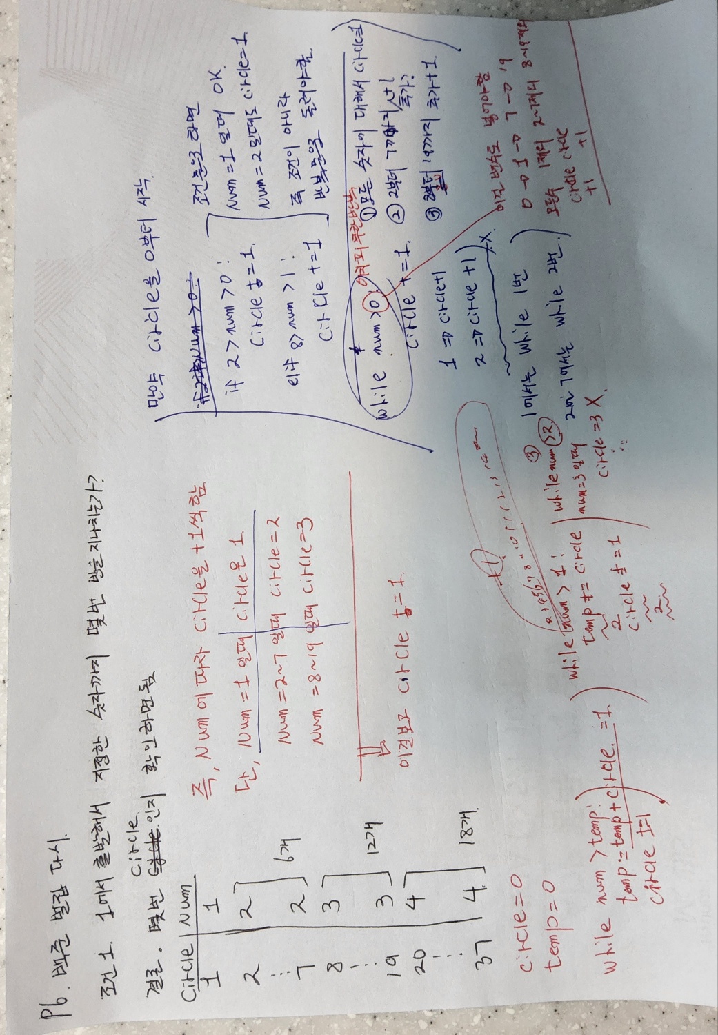 num이 2~7까지는 temp = 1일때 circle이 2가 됨. => 다시 temp가 7이 나와야 while이 종료가 됨