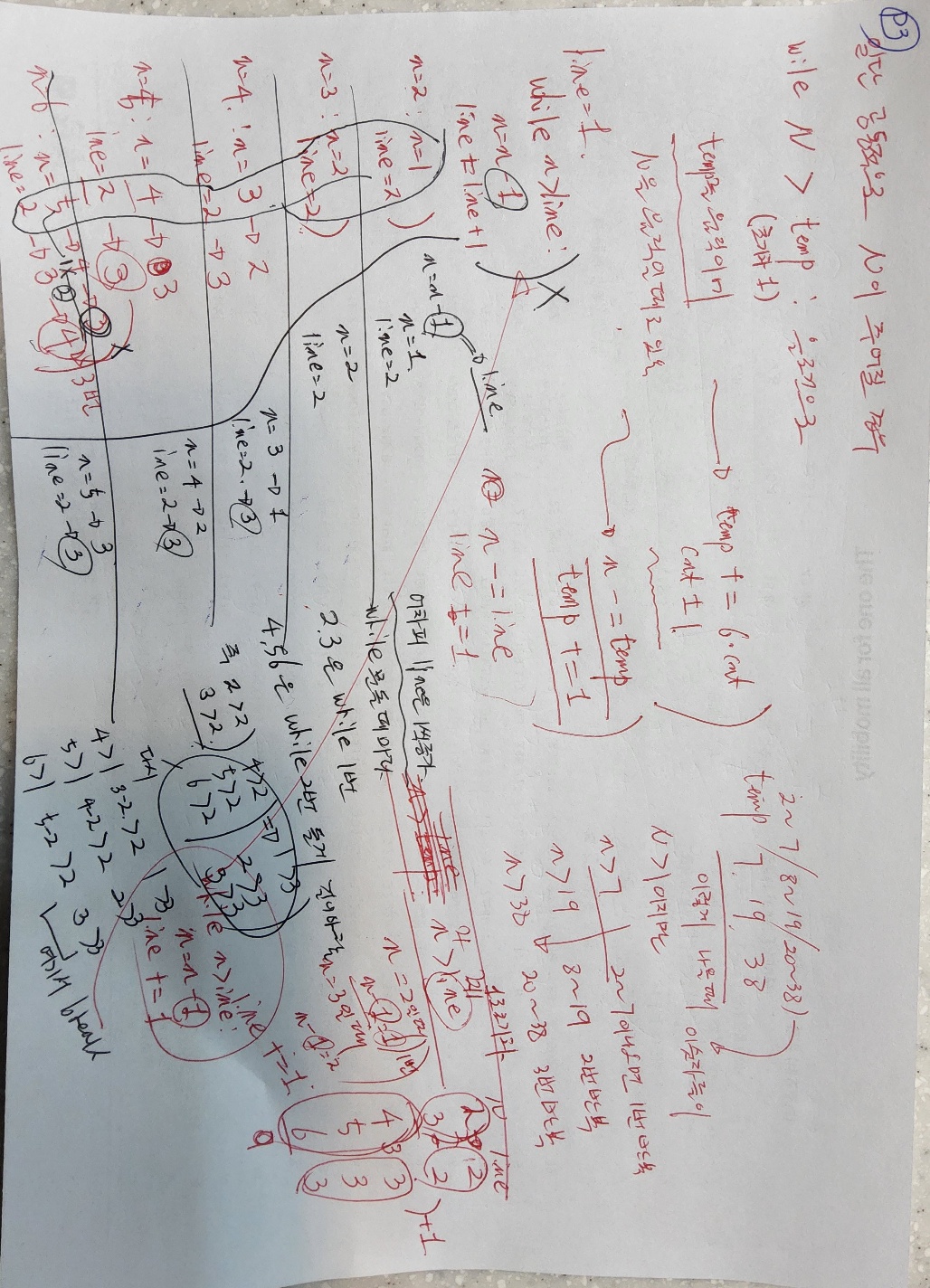 num이 20~37까지는 위에 반복해서 temp가 37이나와야 circle = 4에서 종료.