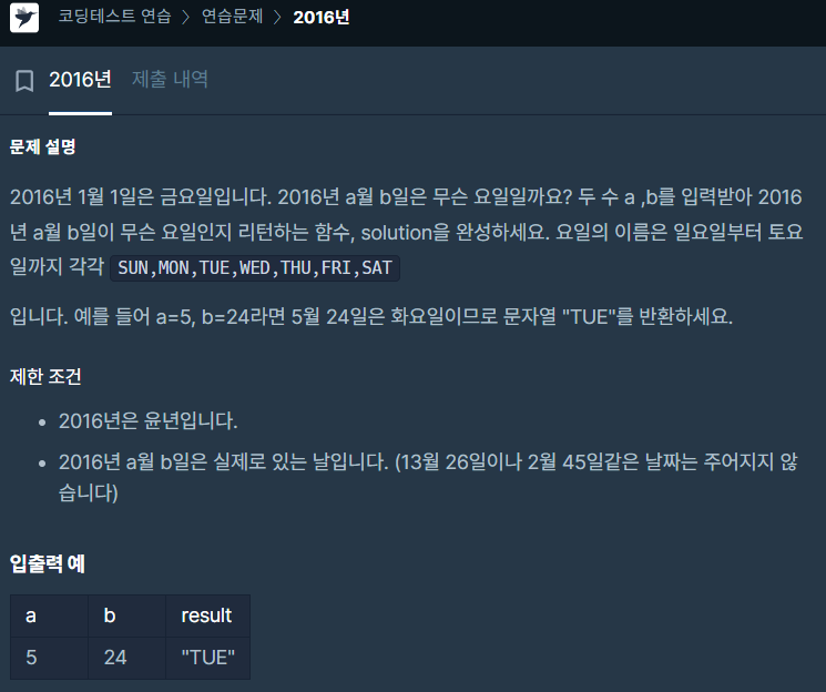 2월에는 1월의 총 일수 + b의 값을 % 7을 해서 days에서 찾으면 된다.