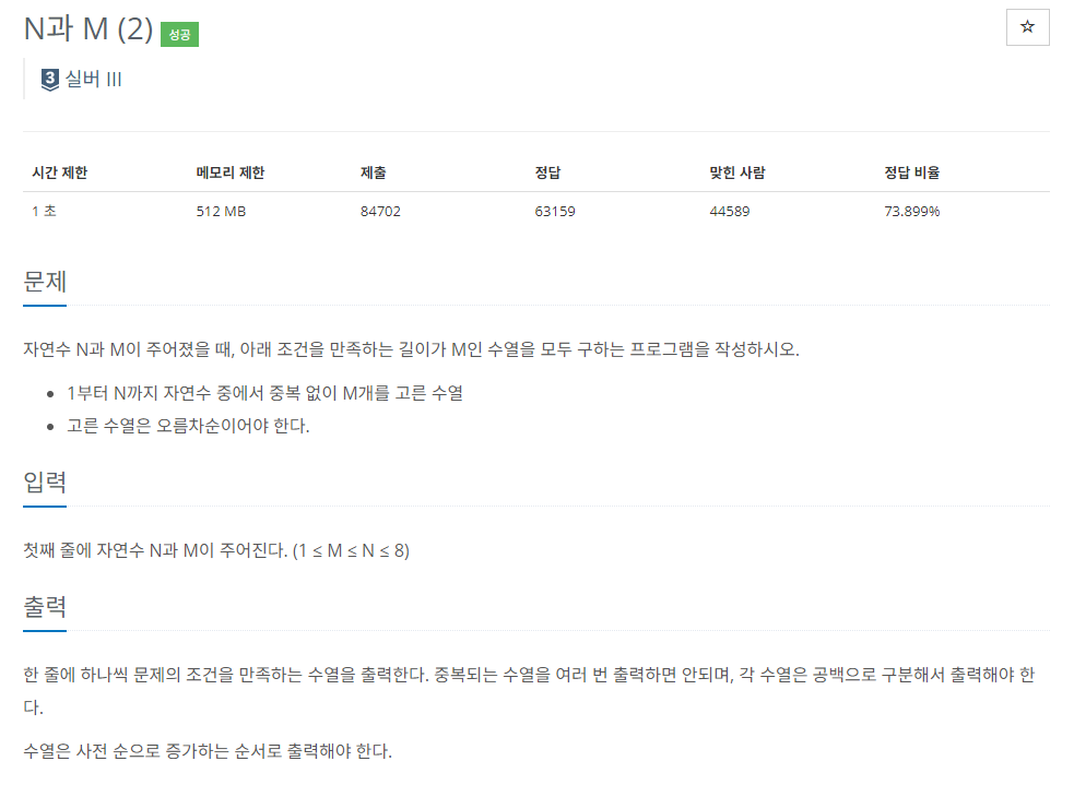 [python_파이썬_Half Pass]백준_15650번_N과 M(2)_백트래킹_풀이