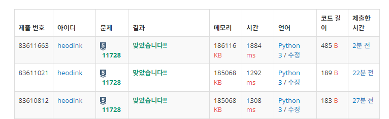 | [python_파이썬_Pass]백준_2577번_숫자의개수_구현_풀이 (0) | 2024.09.11 |